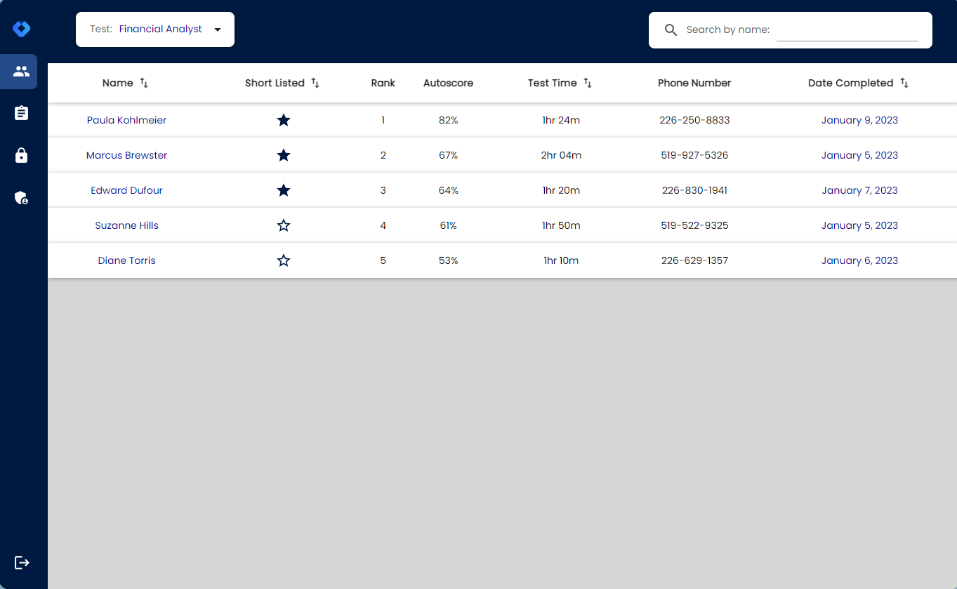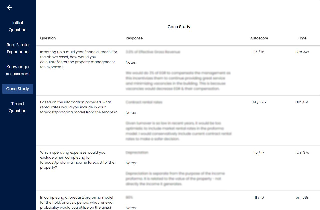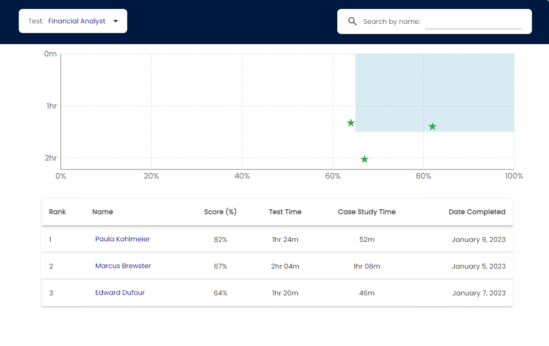 Click on a candidate's name to see a breakdown of how they did on the Case Study as well as their overall